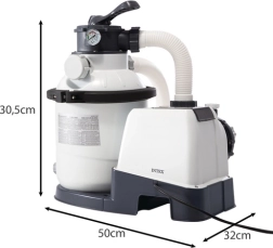 Piesková filtrácia INTEX je ideálnou voľbou pre stredné a veľké nadzemné bazény. Vysoký prietok 5700 l/h a systém Hydro Aeration výrazne zlepšujú cirkuláciu a okysličenie vody, čo sa prejaví na jej priezračnosti a komforte pri kúpaní. Odolná konštrukcia nádrže proti korózii, prehľadný manometer a otočný prírubový spoj uľahčujú inštaláciu aj údržbu.