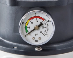 Päťcestný ventil, prehľadný manometer a vstavaný časovač pre automatické cykly uľahčujú prevádzku a šetria energiu.