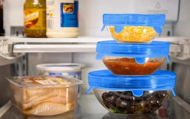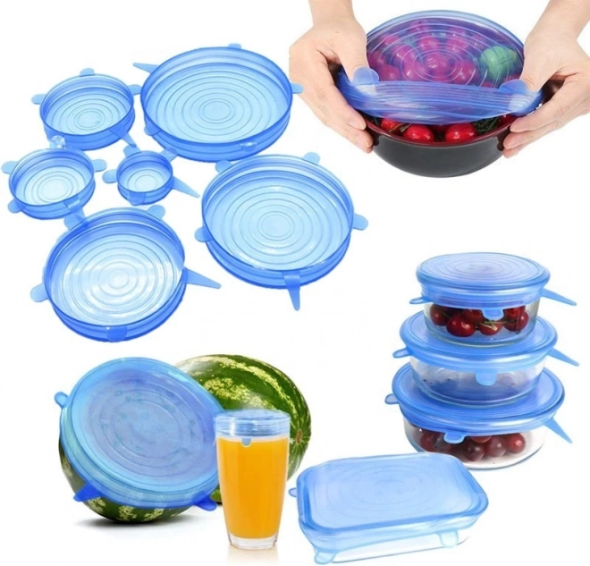 Šesť viečok v rôznych priemeroch pokryje poháre, misky, hrnce aj rozkrojené ovocie – od malých kelímkov až po veľké misy.