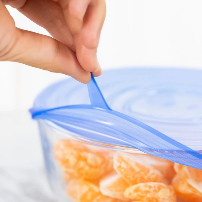 Praktická sada 6 silikónových viečok na opakované použitie dokonale utesní misky, poháre aj hrnce rôznych tvarov a veľkostí. Elastický, bezpachový silikón udrží čerstvosť potravín, neprepúšťa pachy v chladničke a je odolný voči teplotám od mrazničky až po horúce jedlá. Viečka sa ľahko nasadzujú vďaka bočným uškám a možno ich umývať v umývačke.