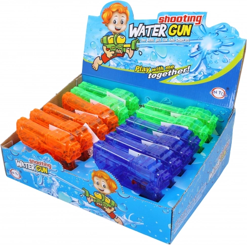 Štýlová vodná pištoľ s dĺžkou 15 cm je ideálna na osvieženie počas horúcich letných dní. Dostupná v troch farebných variantoch - modrá, zelená a oranžová.