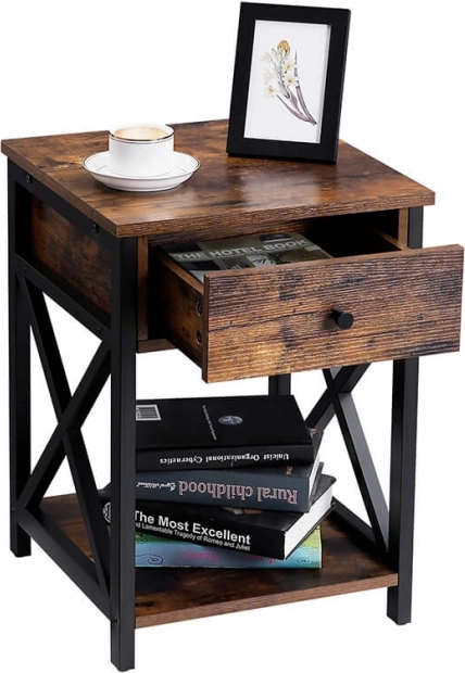 Táto rustikálna skrinka so zásuvkou je ideálnou voľbou do vašej spálne alebo obývacej izby. Skvele sa hodí na ukladanie kníh, budíkov, kvetináčov alebo na vystavenie krásne zarámovaných fotografií.