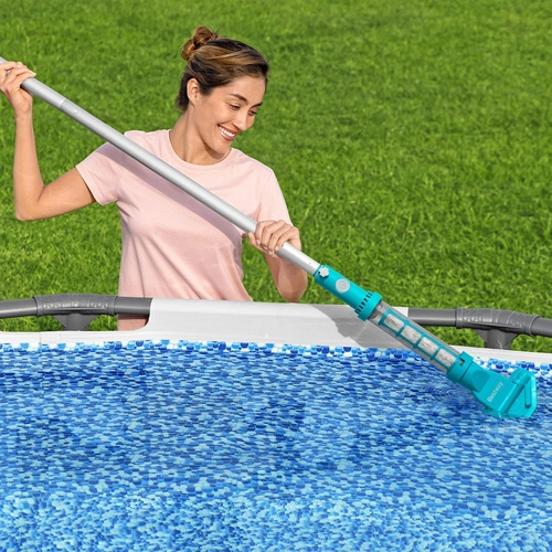 Bezdrôtový vysávač do bazéna Bestway AquaSurge je praktické riešenie na rýchle a efektívne odstránenie piesku, lístia aj drobných nečistôt. Vďaka kompatibilite s bazénmi do priemeru 610 cm je ideálny pre väčšinu záhradných bazénov. Ľahká trojdielna teleskopická tyč zabezpečí komfortný dosah a jednoduchú manipuláciu.