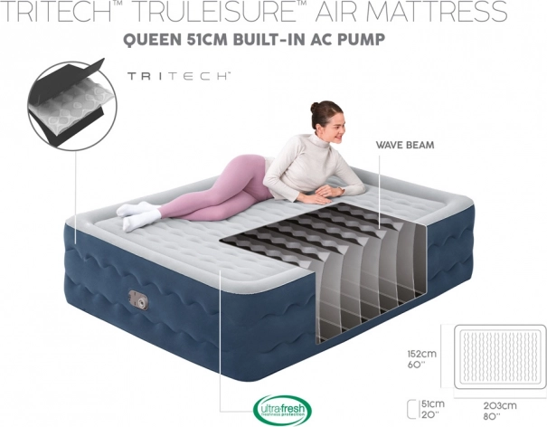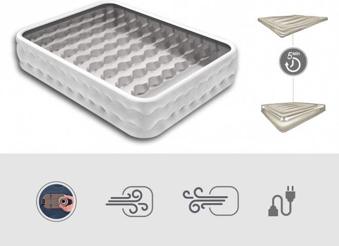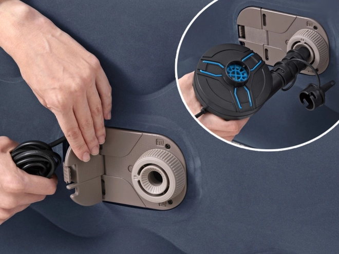 Integrovaná AC pumpa 220–240 V nafúkne aj vyfúkne matrac približne za 5 minút. Možno použiť aj ručnú/ nožnú pumpu, pokiaľ nie je k dispozícii elektrina.