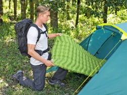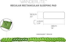 Súčasťou balenia je karimatka s rozmermi 188 cm x 58,5 cm x 6,5 cm, vak na uskladnenie a opravná záplata.
