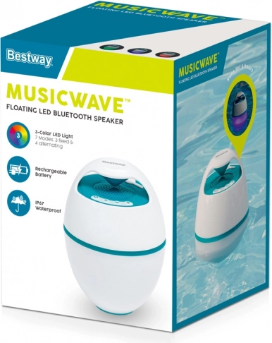 Plávajúci reproduktor Bestway MusicWave™ je vaším dokonalým spoločníkom pre relax pri bazéne. Tento vodotesný Bluetooth reproduktor ponúka až 6 hodín kvalitnej hudby a jeho nádherné farebné LED osvetlenie vytvára jedinečnú atmosféru.