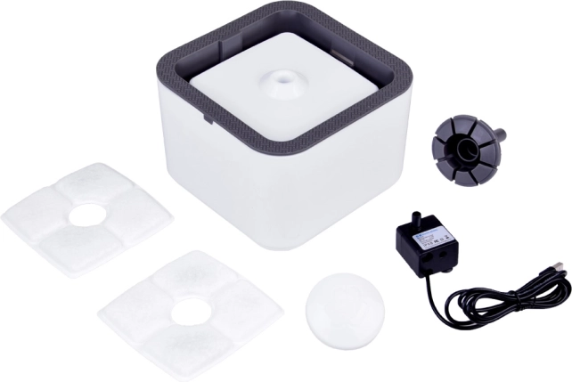 Táto moderná fontána pre domácich miláčikov je navrhnutá na bezpečné a pohodlné každodenné používanie. Vďaka veľkému objemu 2,5 l zaistí dostatok vody aj na niekoľko dní, zatiaľ čo ultra tiché čerpadlo neruší cez deň ani v noci. Zaoblené tvary a jednoduchá konštrukcia umožňujú ľahké čistenie a rýchlu inštaláciu.