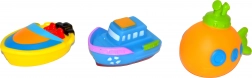 Táto rozkošná sada do vody prináša deťom množstvo zábavy pri kúpaní. Dve loďky a ponorka sú vyrobené z mäkkej gumy, ktorá je príjemná na dotyk a bezpečná aj pre tých najmenších. Vďaka kompaktnej veľkosti 8 cm sú hračky ľahko uchopiteľné a vhodné na prvé objavovanie vody.