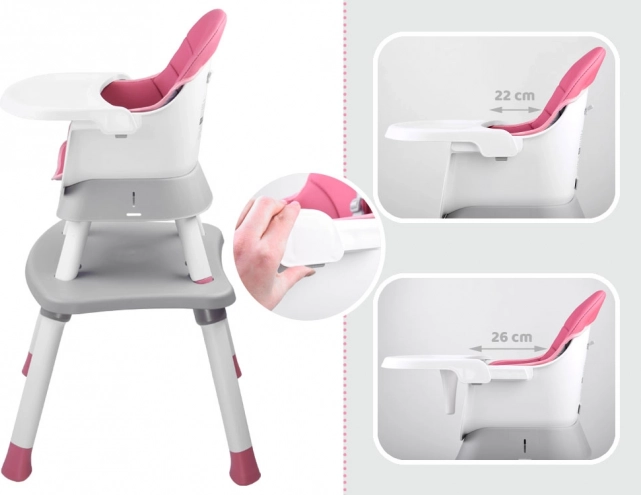 - 6 funkcií v 1: vysoká stolička s pultíkom, nadstavba na jedálenskú stoličku, nízka stolička s pultíkom, stolička + stolík, stolík s doskou na kocky, nízky taburet