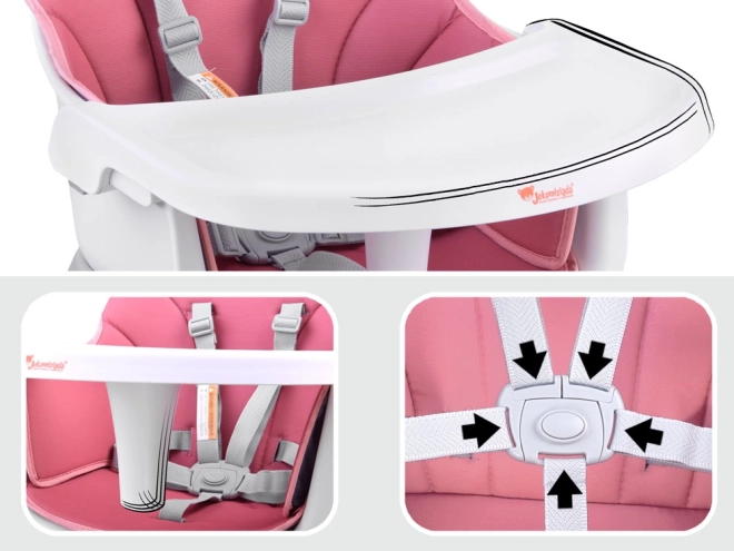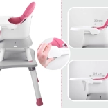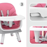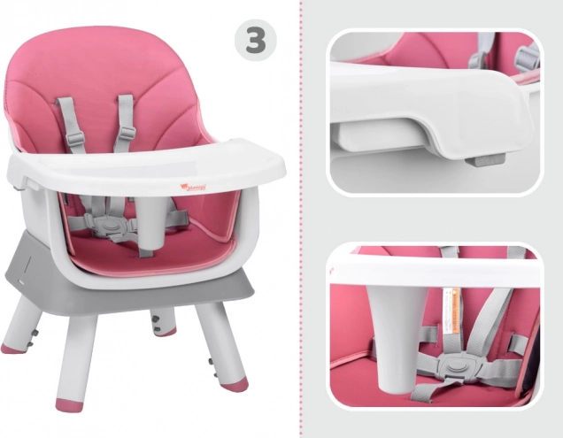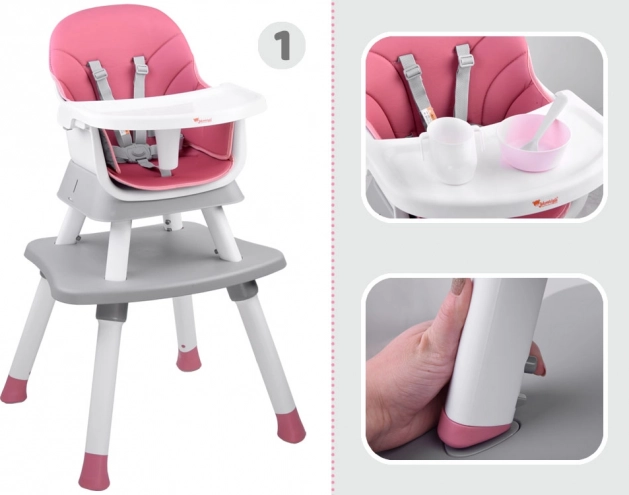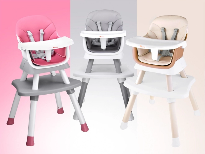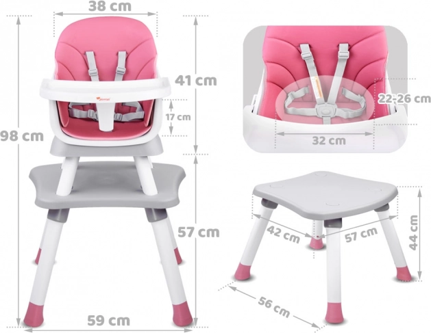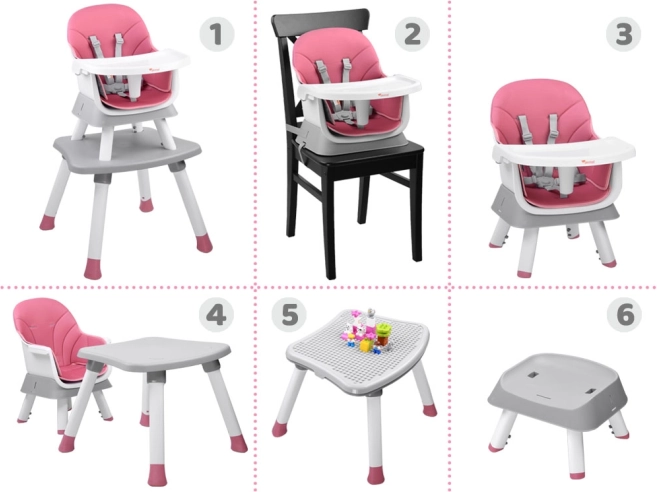 Multifunkčná detská jedálenská stolička 6v1 pre deti od 6 mesiacov rastie s vaším dieťaťom. Ponúka vysoké aj nízke sedenie, nadstavbu na jedálenskú stoličku, stolík na hranie aj taburet. Má 5-bodové pásy, odnímateľný a ľahko umývateľný pultík, protišmykové nožičky a ľahko udržiavateľnú priedušnú poťahovú látku.