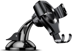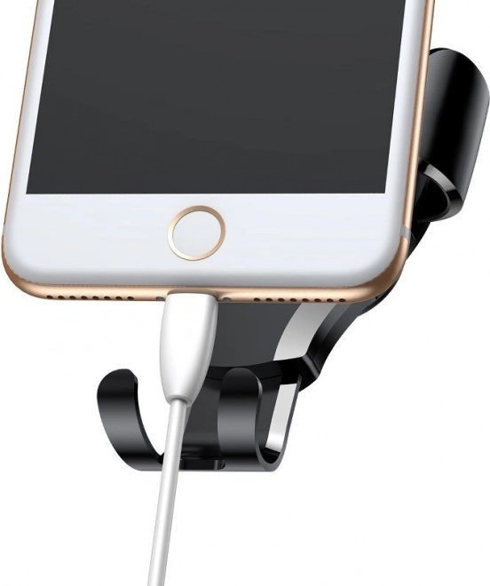 Gravitačný mechanizmus sa postará o okamžité uchytenie – vložíte telefón a bočné čeľuste sa samy zovrú. Odolná konštrukcia z PC a kovových prvkov so silikónovým polstrovaním chráni zariadenie pred poškriabaním a drží ho pevne aj na nerovnostiach.