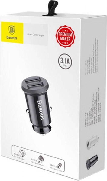 BASEUS Grain je spoľahlivá nabíjačka do auta, ktorá umožní súčasne napájať dve zariadenia – telefón, navigáciu či slúchadlá. Hliníkové telo s elegantnou povrchovou úpravou skvele ladí s interiérom vozidla a odolá každodennému používaniu. Celkový výstup 3,1 A poskytne stabilné a efektívne nabíjanie bez zbytočného zahrievania.