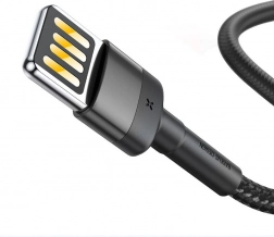 Obojstranný USB konektor pre ľahké zapojenie na prvý pokus. Hliníkové koncovky a zosilnený gumový spoj zabezpečujú vyššiu odolnosť v kritických miestach ohybu.
