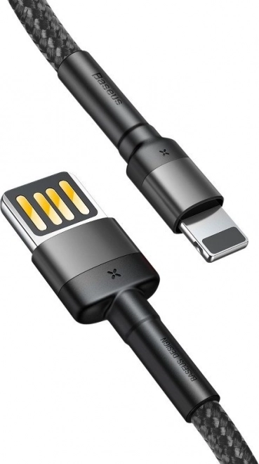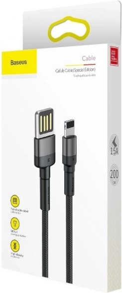Kábel Baseus Cafule (špeciálna edícia) kombinuje prémiové materiály a praktický dizajn. Opletenie z odolného nylonu zabraňuje zamotávaniu, hliníkové konektory zvyšujú životnosť a zosilnený TPE spoj chráni najviac namáhané časti kábla. Vďaka obojstrannému USB konektoru a Lightning koncovke je ideálny pre iPhone, iPad a ďalšie zariadenia Apple.