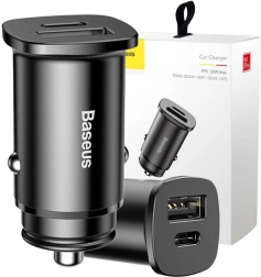 Kompaktný autoadaptér Baseus Square s výkonom 30 W ponúka rýchle nabíjanie cez USB-A aj USB-C. Podporuje štandardy QC 4.0, PD 3.0, Huawei SCP, Samsung AFC a MTK PE, takže spoľahlivo dobije telefón, tablet aj ďalšie zariadenia. Kovové telo, inteligentné riadenie napätia a prúdu a možnosť nabíjania dvoch zariadení súčasne z neho robia ideálny doplnok do každého vozidla.