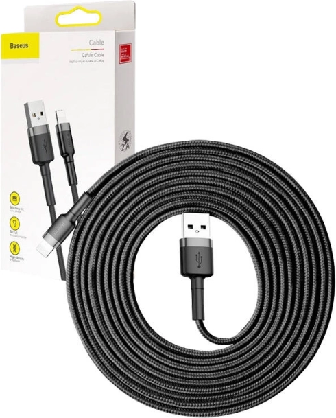 Predĺžený kábel BASEUS Cafule USB–Lightning s dĺžkou 3 metre vám dáva voľnosť pri nabíjaní aj práci s telefónom na gauči, v kancelárii alebo pri posteli. Vďaka kvalitnému spracovaniu s nylonovým opletením a zosilnenými hliníkovými koncovkami je kábel mimoriadne odolný voči ohybu aj opotrebeniu.