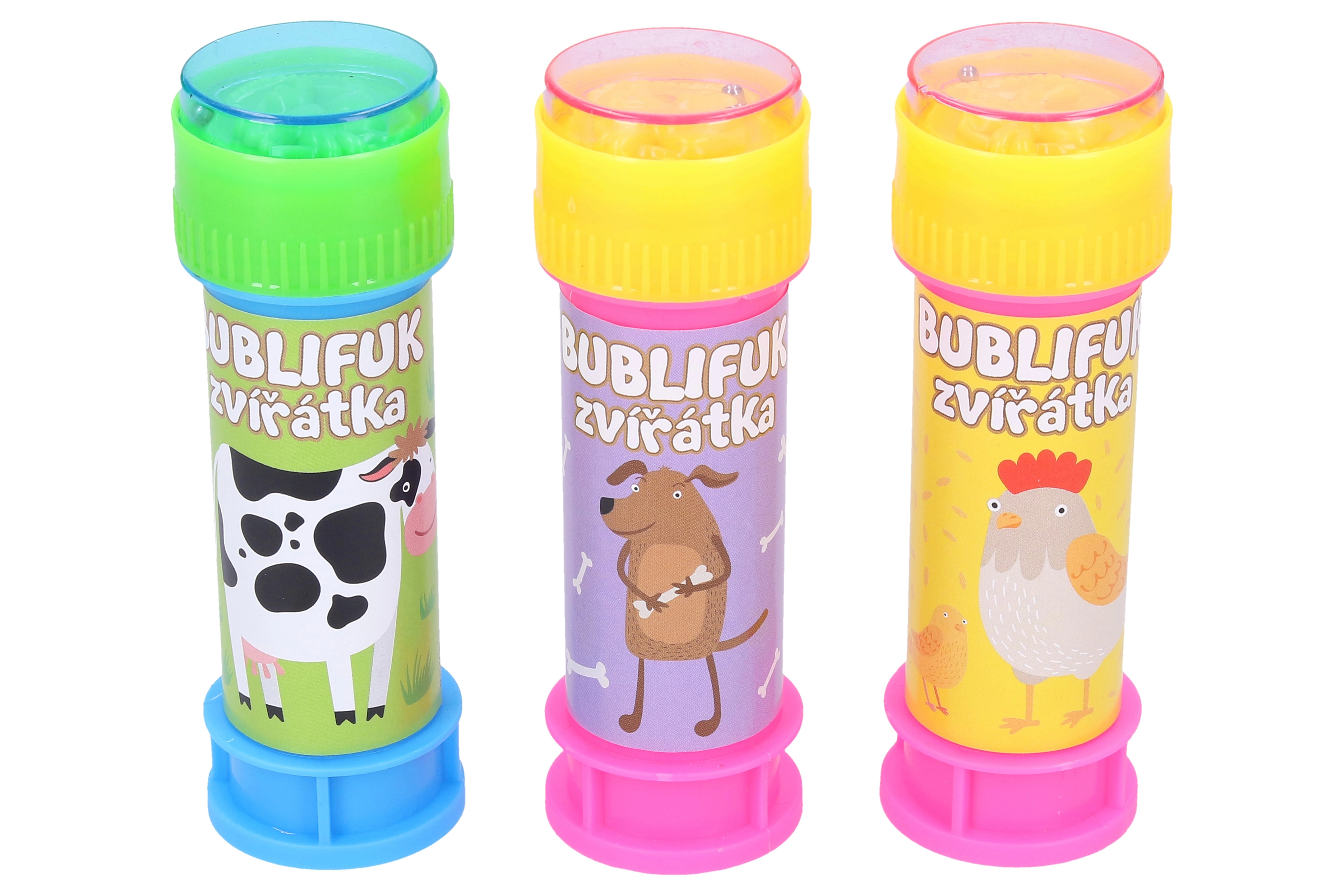 Užite si zábavu s bublifukom v tvare zvieratka. Obsahuje 50 ml bublifukovej tekutiny a je dostupný v šiestich rôznych variantoch, vrátane mačky, kravy, sliepky, psa, prasaťa a ovce.