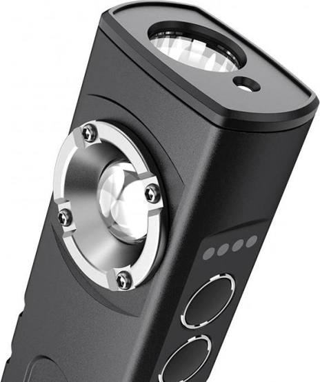Táto baterka je vybavená červeným laserom, vďaka čomu je ideálna ako ukazovadlo na prednáškach alebo prezentáciách. Batériu možno pohodlne nabiť pomocou USB kábla a zariadenie môže slúžiť aj ako powerbanka na nabíjanie mobilných telefónov.