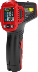 HABOTEST HT650B je spoľahlivý infračervený teplomer na rýchle a hygienické meranie bez kontaktu. Vďaka 12-bodovej laserovej indikácii presne vymedzí oblasť merania a farebný LCD displej prehľadne zobrazí aktuálnu hodnotu, maximum, stav batérie aj zvolenú jednotku. Emisivita je nastavená na 0,95 na univerzálne použitie na väčšine povrchov.