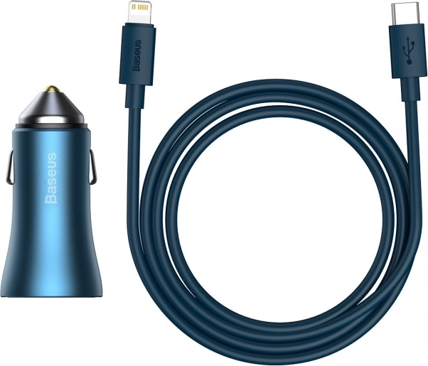 Odolné kovové telo z hliníka s prvkami ABS/PC dobre odvádza teplo, pevne drží v 12–24 V zásuvke zapaľovača a modrá LED uľahčí zapojenie aj po zotmení. Súčasťou balenia je USB‑C – Lightning kábel (1 m), takže zariadenia od APPLE pripojíte bez dokupovania príslušenstva.