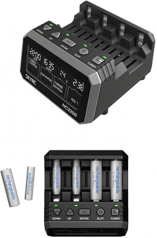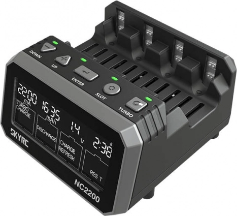 Výkonný procesor Cortex‑M3 optimalizuje parametre v reálnom čase a chráni články pomocou pokročilých obvodov. VA displej s vysokým kontrastom zobrazuje prúd, kapacitu, napätie aj čas, zatiaľ čo LED indikácia informuje o priebehu v jednotlivých slotoch. Pripojenie cez Bluetooth a aplikáciu SkyCharger vám poskytne detailný prehľad a kontrolu nad celým procesom.