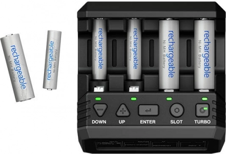 Vysokokontrastný VA displej zobrazuje kľúčové hodnoty prehľadne a čitateľne. Režim Turbo Charge výrazne skracuje dobu nabíjania, ovládanie je jednoduché vďaka tlačidlám SLOT, ENTER, UP/DOWN.