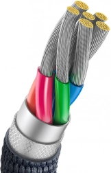 Prémiové nylonové opletenie a vystužené krčky chránia kábel pred lámaním aj ťahaním. Vo vnútri sa nachádza 8‑žilové vedenie pre stabilný prúd a efektívne nabíjanie. Praktická dĺžka 2 metre uľahčí použitie aj na zadnom sedadle auta alebo v ťažšie dostupných zásuvkách.