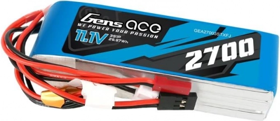 Batéria Gens Ace s kapacitou 2700mAh a napätím 11.1V je navrhnutá pre spoľahlivé napájanie diaľkovo ovládaných zariadení. S vysokým výkonom a konektormi FUTABA/JST-XHR-3P/JST-SYP je ideálnou voľbou pre modelárov.