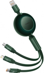 Univerzálny sťahovací kábel Baseus Bright Mirror 3 spája konektory USB‑C, Lightning a micro USB v jednom. Ponúka rýchle nabíjanie až 66 W, prenos dát 480 Mb/s (Lightning) a kompaktné úsporné prevedenie so zabudovanou ochranou zariadení.