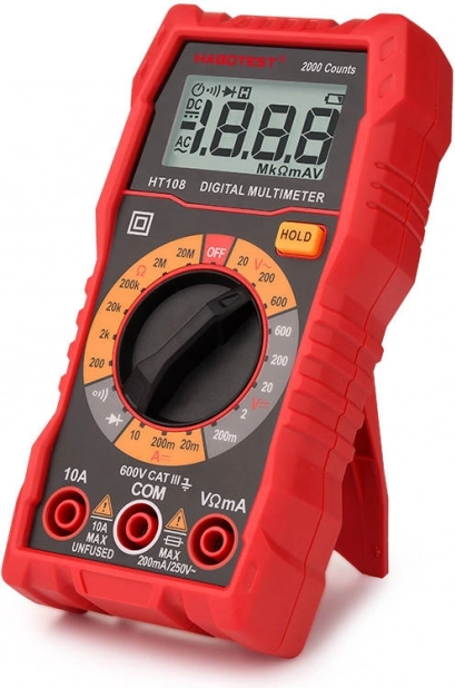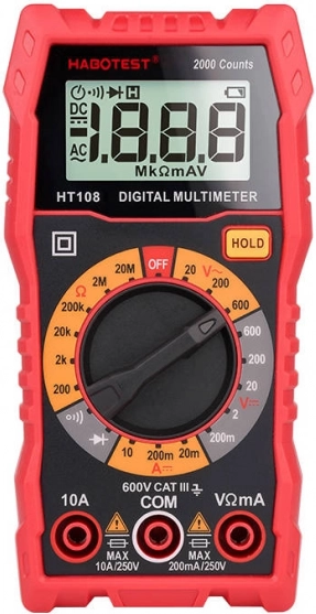 Digitálny univerzálny multimeter Habotest HT108L je šikovné zariadenie, ktoré prekvapí šírkou svojich možností. Umožňuje s vysokou presnosťou merať okrem iného striedavé a jednosmerné napätie, odpor, kontinuitu alebo kapacitu. Umožňuje tiež testovať diódy a vďaka praktickým tlačidlám môžete efektívne zvoliť príslušnú funkciu.