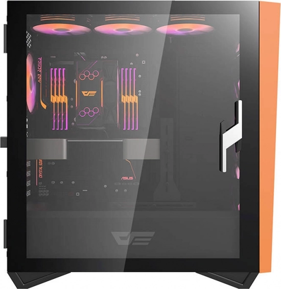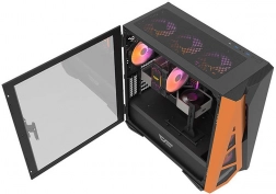 Otvoriteľný sklenený panel elegantne zvýrazní vaše komponenty a RGB. Praktická rukoväť uľahčuje rýchly prístup k hardvéru aj údržbu.
