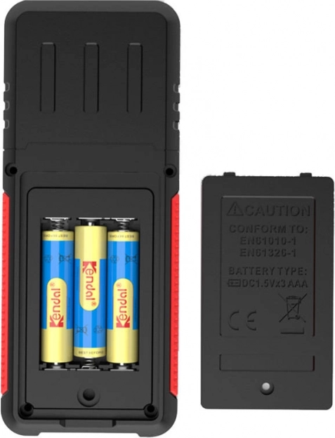 Odolná konštrukcia: Prístroj je vyrobený z plastu ABS, čo mu dodáva odolnosť proti pádom, prachu a vode. Ergonomický dizajn zabezpečuje pohodlné používanie a špeciálny kryt chráni meracie hroty pred poškodením.