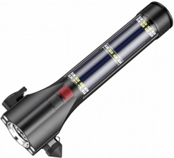Praktické magnety umožnia prichytenie na kovové povrchy, zatiaľ čo integrované bezpečnostné kladivko, rezač pásov a bzučiak poskytnú rýchlu pomoc v núdzi. Solárny panel šetrí energiu aj životné prostredie; energiu z integrovanej batérie môžete využiť aj na núdzové dobitie telefónu.