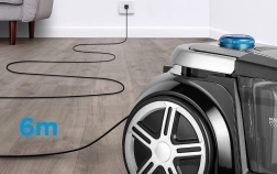 Motor s príkonom 600 W poskytuje sací výkon až 130 W, takže si poradí s prachom, omrvinkami aj chlpmi. Filter HEPA 12 zachytí jemné častice pre čistejší vzduch v domácnosti.
