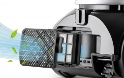 Výkonný motor s príkonom 600 W a sacím výkonom 130 W si poradí s prachom, omrvinkami, chlpmi aj nečistotami zachytenými v kobercoch. Pokročilý HEPA 12 filter zachytí aj veľmi jemné častice, takže je vzduch doma čistejší a sviežejší. Vysávač pracuje ticho (cca 68 dB), takže neruší domácnosť ani domácich miláčikov.