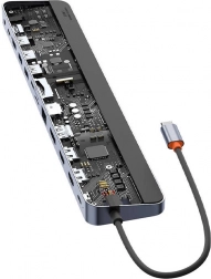 Rozšírte svoj notebook o až 12 portov vďaka rozbočovaču BASEUS EliteJoy Gen2 12v1. Získate 2× HDMI až 4K, DisplayPort 4K/60 Hz, 3× USB 3.0 (500 MB/s), USB‑C dáta, PD nabíjanie 100 W, RJ45 gigabit, SD/TF čítačku a 3,5 mm audio. Telo z hliníkovej zliatiny so silikónom zároveň slúži ako stojan s 8° náklonom pre pohodlnejšie písanie a lepšiu ergonómiu.