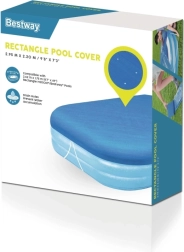 Odolná ochranná plachta Bestway pre obdĺžnikové nafukovacie bazény s rozmermi 262 × 175 × 50,5 cm spoľahlivo chráni vodu pred hmyzom, lístím, vtákmi aj slabým dažďom. Vďaka odtokovým otvorom sa na povrchu nedrží prebytočná voda, upevňovacie šnúry bránia strhnutiu vetrom a plachta navyše poskytuje tepelnú izoláciu a zvýšené bezpečie pre deti.