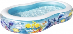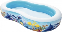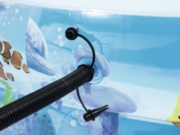 Užite si leto s priestranným nafukovacím bazénom BESTWAY s motívom oceánu. Vďaka oválnemu tvaru, širokým stenám a stabilnej komorovej konštrukcii je ideálny na bezpečné vodné radovánky detí. Vyrobený z odolného vinylu, ponúka rýchle vypustenie a jednoduché skladovanie.
