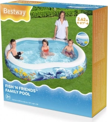 Nafukovací bazén BESTWAY Fish 'n Friends premení vašu záhradu na farebné podmorské kráľovstvo. Oválny tvar poskytuje dostatok miesta na hranie a čľapkanie, zatiaľ čo široké bočné steny zabezpečujú pohodlie aj stabilitu. Kvalitné PVC/vinyl dobre odoláva bežnému používaniu počas horúcich letných dní.