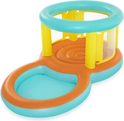 Farebné nafukovacie ihrisko Bestway Jumptopia 2v1 kombinuje trampolínu a brodisko pre celoročnú zábavu. Mäkké nafukovacie madlá a vysoké sieťované steny zvyšujú bezpečnosť pri skákaní, zatiaľ čo odolná konštrukcia je ideálna na záhradu, terasu aj do interiéru. V lete naplníte bazénik vodou, v zime napríklad loptičkami – o zábavu je postarané.