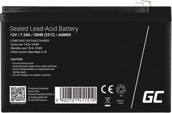 Spoľahlivá nabíjateľná batéria AGM 12 V / 7,2 Ah od GREEN CELL pre UPS, alarmy, zabezpečovacie systémy aj záložné napájanie. Ponúka bezúdržbovú prevádzku, vysokú bezpečnosť vďaka technológii VRLA/AGM a dlhú životnosť až 5+ rokov. Ideálna na cyklické aj udržiavacie použitie.