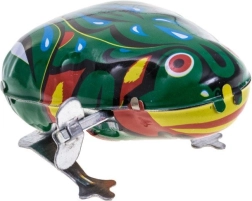 Táto roztomilá hračková žabka je vyrobená z kovu v krásnej zelenej farbe a je poháňaná pružinovým mechanizmom, ktorý sa naťahuje kľúčikom. Žabka prináša úsmev na tvár všetkým generáciám. Vďaka malým rozmerom sa ľahko zmestí do detskej ruky a je perfektná pre vtipné momenty, keď je napríklad ukrytá v kabelke. Uistite sa, že ju máte ako talizman pre šťastie!