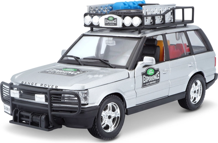 Tento precízne spracovaný model vozidla RANGE ROVER v mierke 1:24 prináša autentické detaily, ktoré potešia každého fanúšika terénnych áut. Strieborná karoséria doplnená o strešný nosič s príslušenstvom, predný ochranný rám a realistické polepy vytvára atraktívny vzhľad na hranie aj vystavenie.