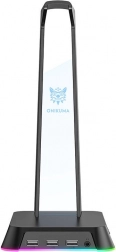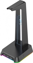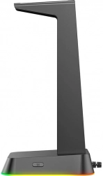 Vďaka integrovaným trom USB portom môže tento stojan slúžiť nielen ako miesto pre vaše slúchadlá, ale aj ako nabíjacia stanica, čo z neho robí multifunkčný prvok na vašom stole. Osvetlenie s možnosťou výberu medzi plynulou zmenou farieb RGB alebo jednofarebným režimom pridáva na jeho vzhľade.