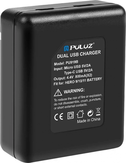 Puluz dvojitá USB nabíjačka ponúka efektívny spôsob, ako nabíjať batérie vašich kamier HERO 9, 10, 11 a 12 súčasne. Vyznačuje sa kompaktným dizajnom a flexibilnými možnosťami pripojenia cez micro USB alebo USB-C kábel.