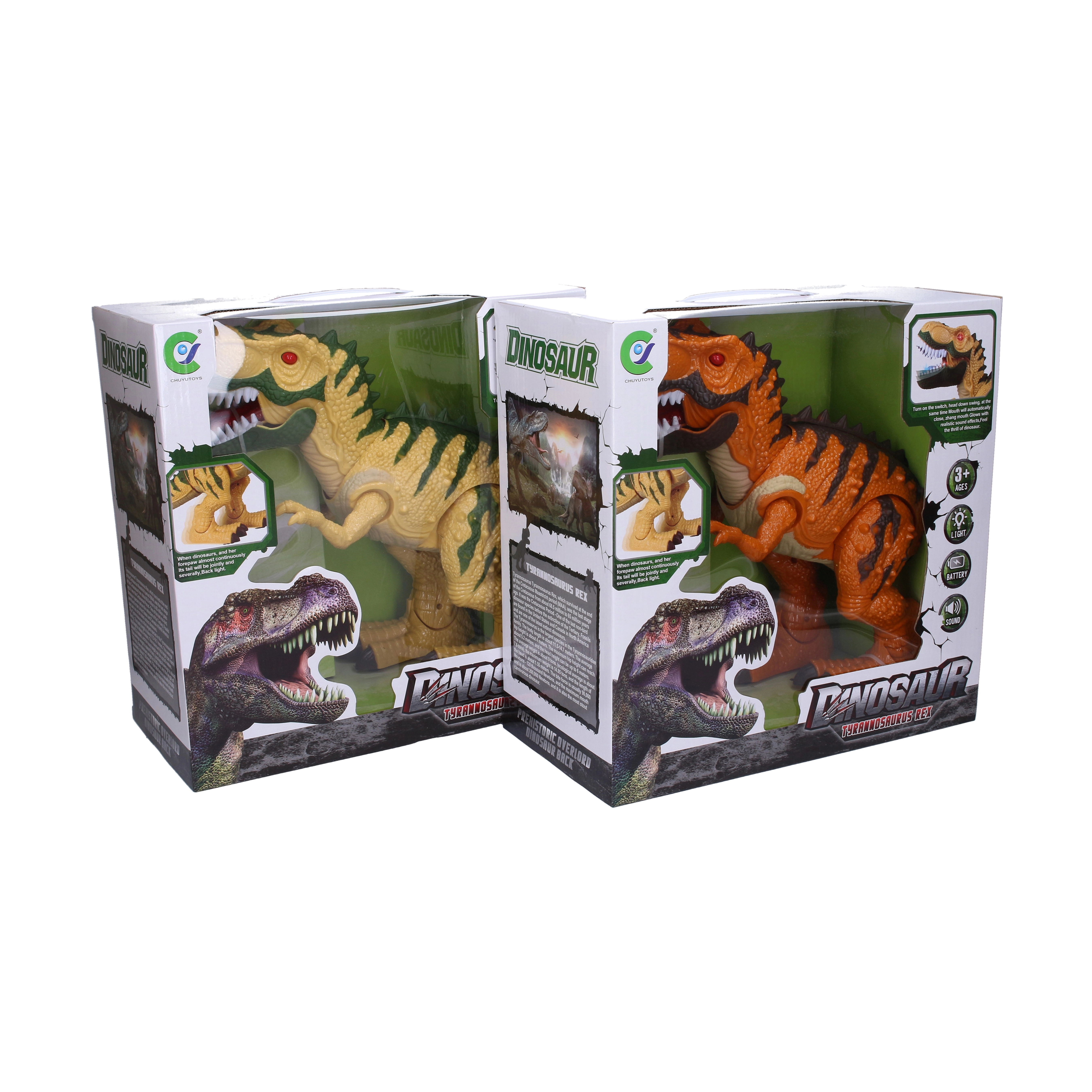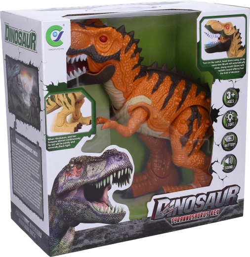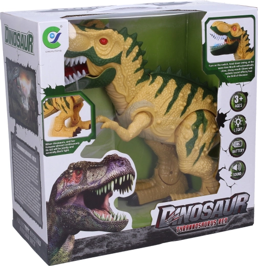 - Pohyb a efekty – dinosaurus chodí, otvára tlamu a vydáva zvuky.