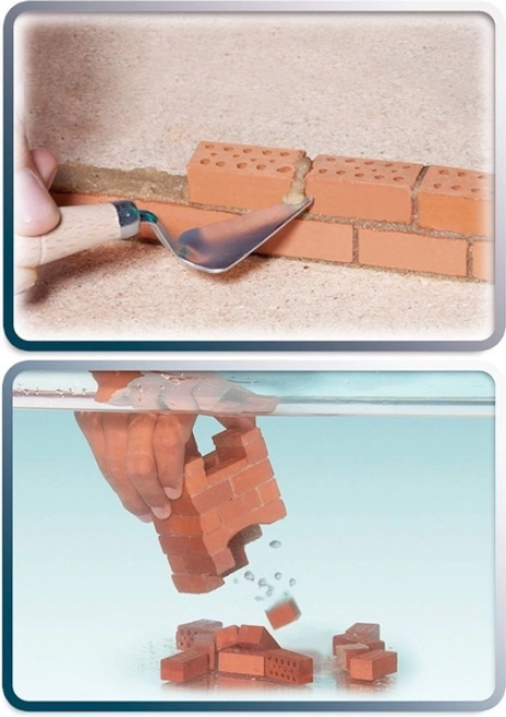 Táto unikátna stavebnica vám umožní postaviť dom alebo hrad ako skutočný staviteľ. Stačí zmiešať maltu, spojiť tehly a pustiť sa do práce. Keď máte hotovo, môžete výtvor namočiť, usušiť a začať stavať znova.