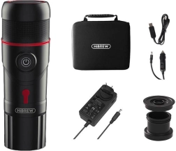 Súčasťou balenia je praktické puzdro na bezpečné a pohodlné prenášanie kávovaru, sieťový adaptér a ďalšie potrebné príslušenstvo, ako je sklápací držiak a nabíjačka do auta, zaisťujúce jeho ľahké použitie kdekoľvek.