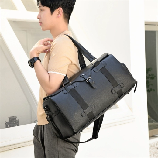 Predstavujeme prémiovú cestovnú tašku, nepostrádateľnú súčasť výbavy každého aktívneho človeka. Táto taška je vyrobená z najkvalitnejšej kože v elegantnej čiernej farbe a je symbolom štýlu v kombinácii s funkčnosťou. Jej rozmery 50x21x24 cm poskytujú optimálnu kapacitu na cestovanie, každodenné používanie alebo návštevy posilňovne.