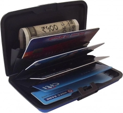 Vonkajšia vrstva je vyrobená z hliníka, ktorý bráni neželanému skenovaniu čipov. Vnútorný, vejárovitý priestor s 6 priehradkami poskytuje dokonalý poriadok pre karty a vizitky. Jednoduché otváranie a zatváranie zabezpečuje praktické tlačidlo.